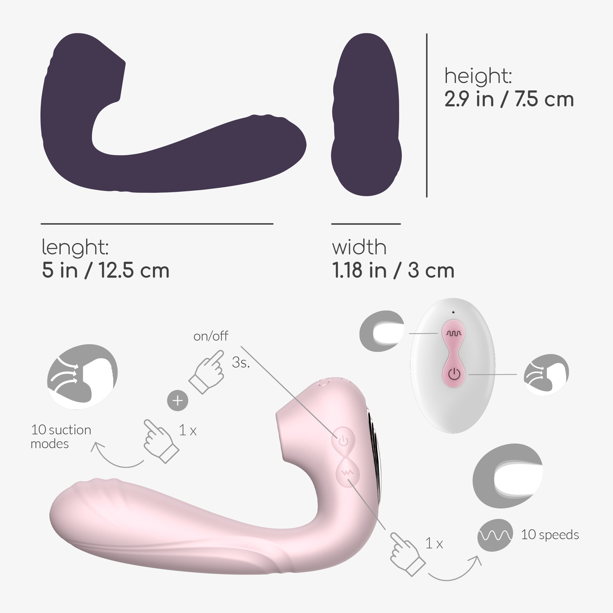 Com 10 modos de sucção e 10 modos de vibração facilmente controláveis através do estimulador e do comando.