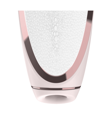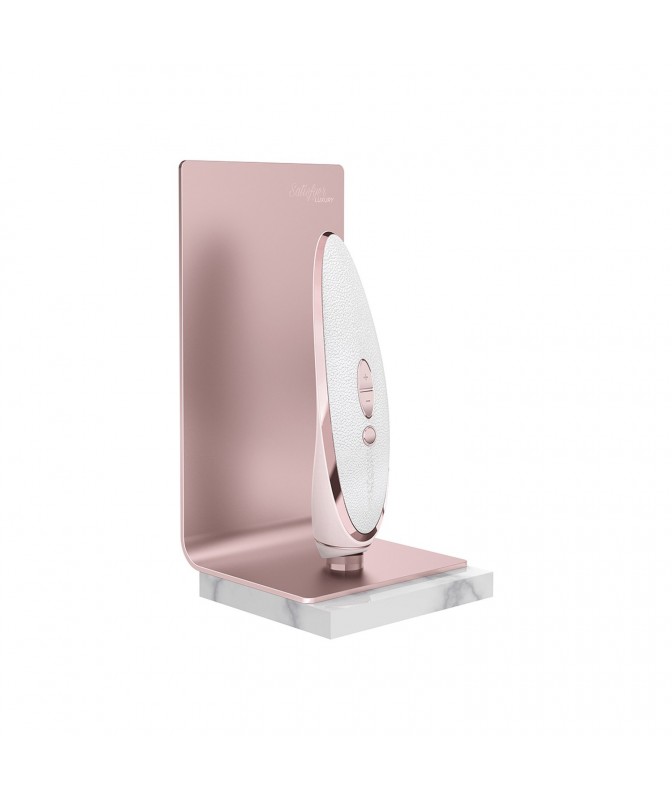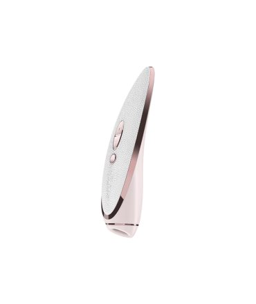 Esta joia de luxo foi projetada com detalhes preciosos em mente. Com materiais como couro branco, detalhes em ouro rosa e silicone macio de uso médico, este brinquedo oferece um toque refinado para o seu gosto cultivado e satisfação do clitóris.
