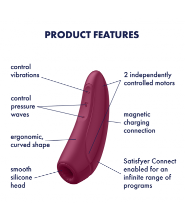 O Curvy 1+ é um estimulador de ar pulsado e um vibrador, 2 em 1. Este estimulador de clitóris tem um design ergonómico, e garante que as ondas de pressão chegam exatamente onde precisa. Além disso, possui vibrações poderosas e a possibilidade de controlá-lo com a aplicação móvel, que funcionará como controle remoto sem limite de distância.Características:11 modos de pulsação; 10 modos de vibração; Com APP móvel (compatível com qualquer smartphone, tablet, relógio Apple e sistemas Android); Lista de reprodução de vibração; Vibração ambiente; USB recarregável; IPX7 à prova d’água; Silicone seguro para o corpo.Material: Silicone.Com R-Love-ution pode controlar até 4 dispositivos remotamente!Descarregue a aplicação oficial em https://apps.apple.com/us/app/satisfyer-connect/id1490244152