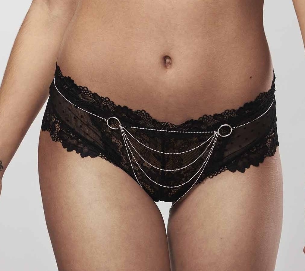 Este colar corporal em forma de bikini para vestir sobre a tua lingerie mais sexy ou sobre a pele nua.