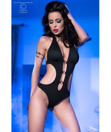 Deslumbre e seduza com este original body estilo triquini, com três argolas em metal na zona do peito e ventre.Totalmente ajustável no pescoço e costas através de colchetes.É tão versátil que pode utilizá-lo fora do quarto! Arrase numa tarde de banhos de sol junto à sua piscina favorita.É um produto de alta qualidade Chilirose, apresentado numa elegante caixa.