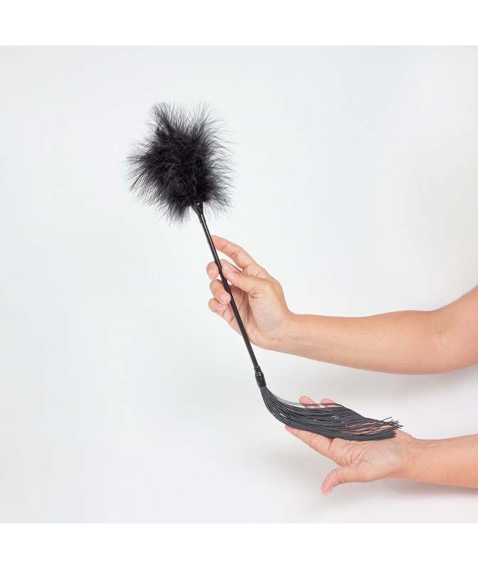 É a altura certa para experimentares este novo brinquedo de prazer com um chicote de um lado e penas do outro.