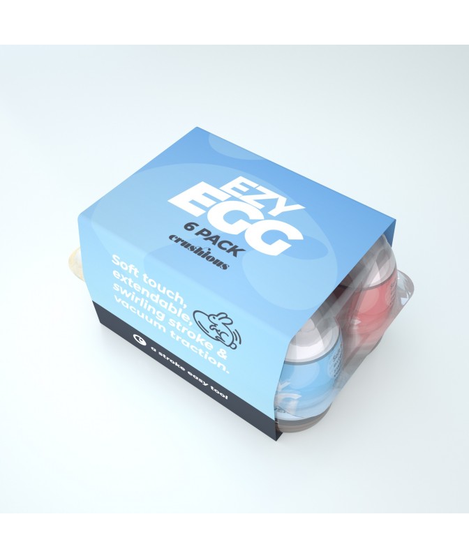 Ezy Eggs Crushious. Caixa de 6 ovos masturbadores com texturas variadas para prazer intenso e divertido.