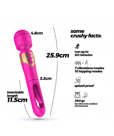 De um lado: uma varinha mágica extra-poderosa com 7 modos de vibração, perfeita para massagens intensas e estímulos arrebatadores.